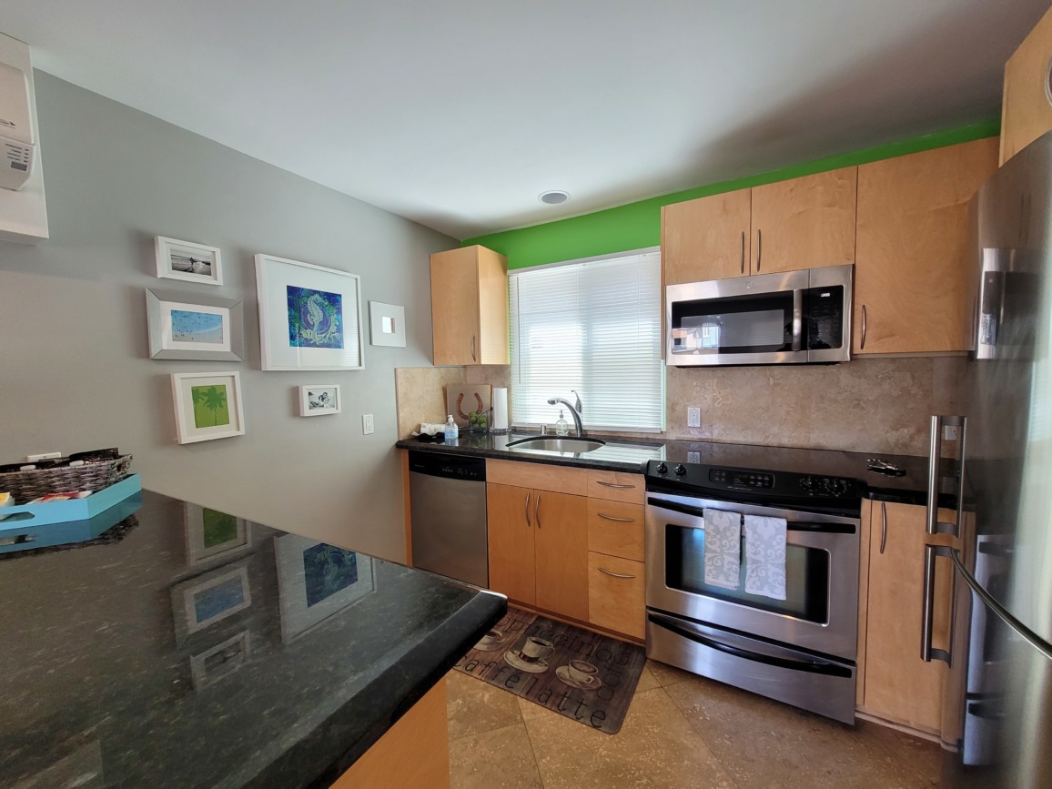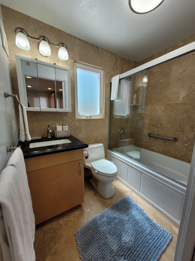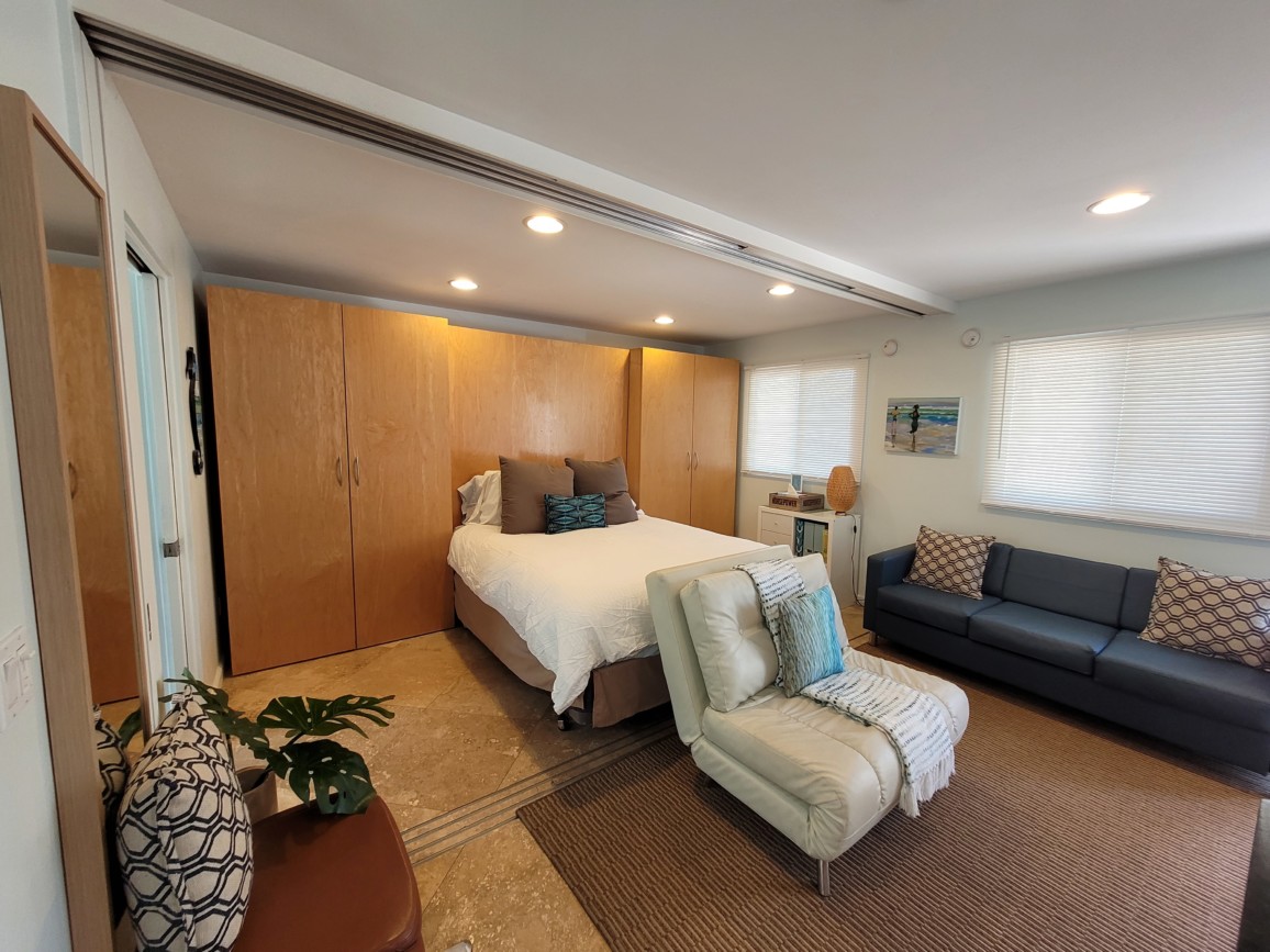 Literally 200 ft from the Pacific Ocean boardwalk and 5 mins walk to Mission Bay, this studio condo with luxury designer is just what you need for your seaside retreat. The beach getaway with modern conveniences is located at the southern tip of famous Mission Beach and only a short walk to stores, groceries and restaurants and is the ideal place to spend a quiet and relaxing vacation. A great place for couples, solo adventurers, business travelers and families (with kids). Located on the ground floor (street level). Includes AC/Heat, free Wifi, dedicated off-street parking.