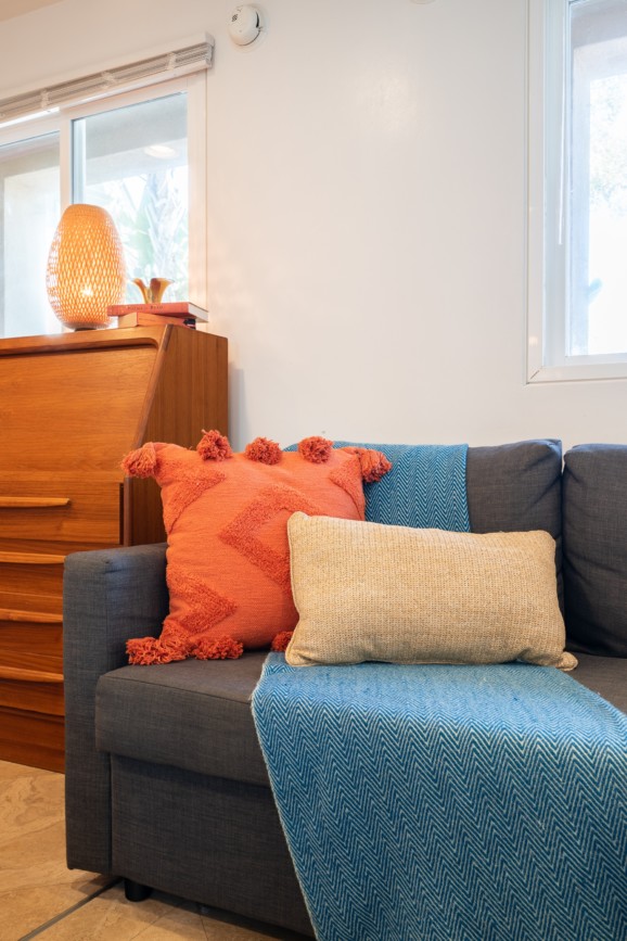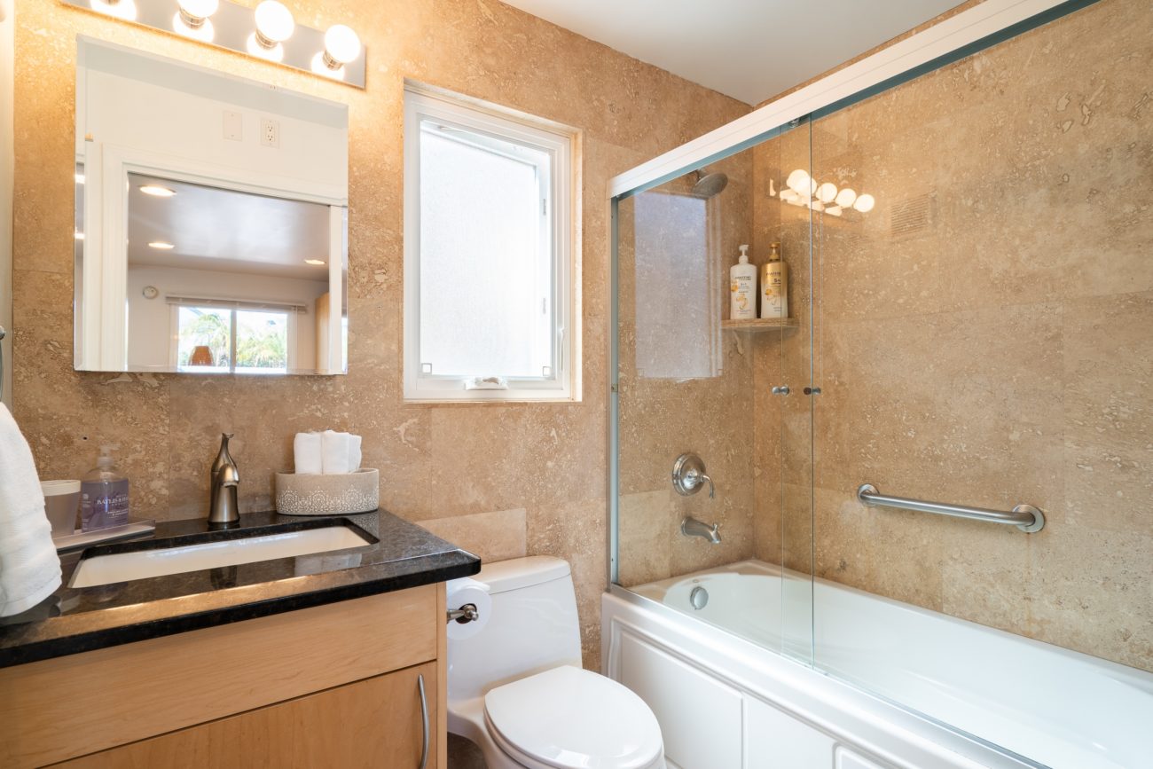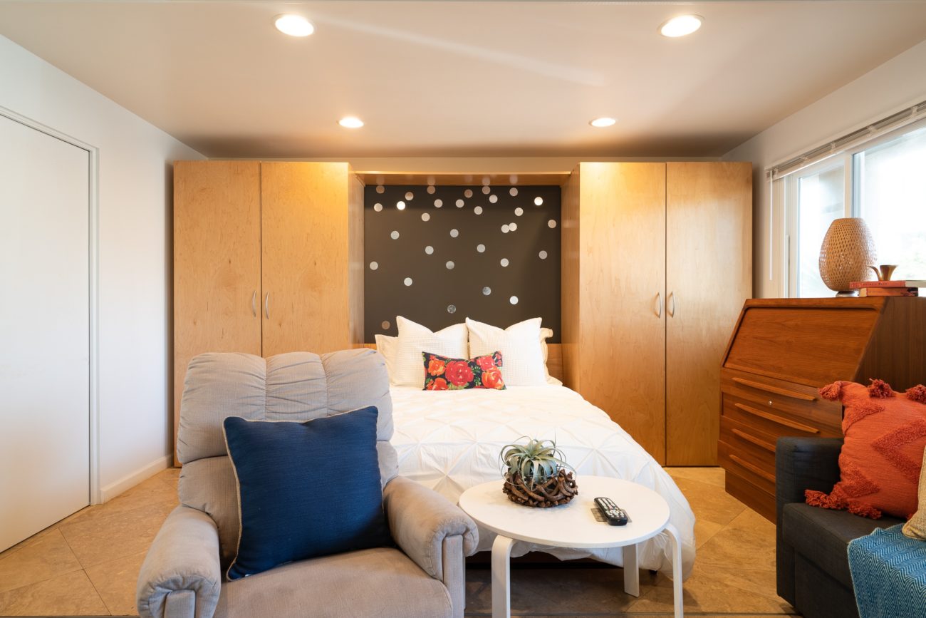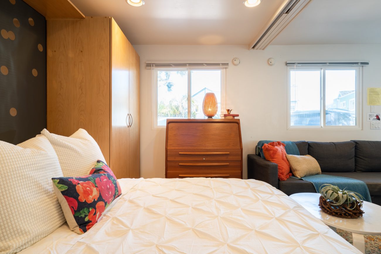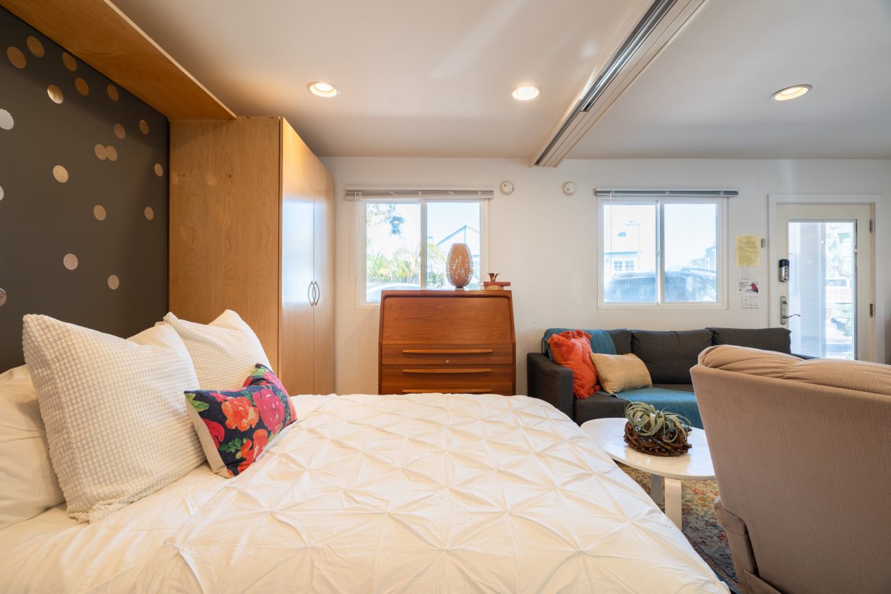 Literally 200 ft from the Pacific Ocean boardwalk and 5 mins walk to Mission Bay, this studio condo with luxury designer is just what you need for your seaside retreat. The beach getaway with modern conveniences is located at the southern tip of famous Mission Beach and only a short walk to stores, groceries and restaurants and is the ideal place to spend a quiet and relaxing vacation. A great place for couples, solo adventurers, business travelers and families (with kids). Located on the ground floor / street level of the building, single flight of stairs. Includes free wifi, AC/Heat, dedicated off-street parking.